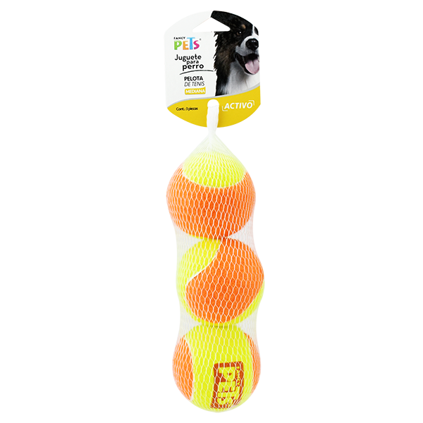 JUGUETE PELOTA MED DE TENIS BICOLOR - 3 PZ FANCY PETS