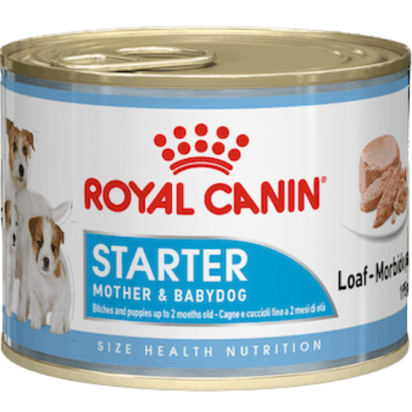 Alimento húmedo Royal Canin Starter Mousse para hembras desde el final de la gestación y durante la lactación. Cachorros desde el destete a los 2 meses.