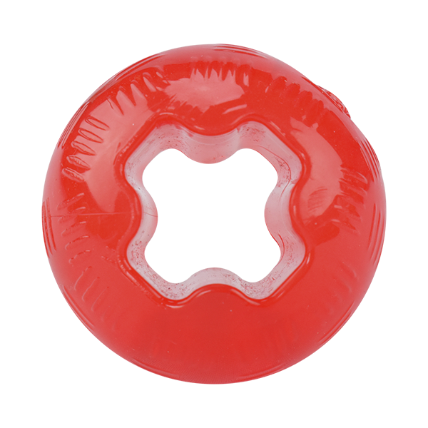 Juguete masticable, resistente, en forma de bola, ideal para satisfacer el instinto de morder de los perros. Gracias a su material de fabricación en goma de alta resistencia, lo hace dificilmente indestructible. Cuenta con orificios donde puedes colocar premios. Puedes utilizarlo en el agua ya que tiene capacidad de flotar.
