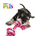 Juguete de hilo para perro, fabricado de algodón que permite a la vez limpiar las piezas dentales de su mascota. Elaborado con material textil que resiste jalones y mordidas, al mismo tiempo que ejercita la mandíbula, fortalece las encías y entretiene a la mascota. Ayuda a interactuar con el perro, previniendo el estrés y el problema de mordisquear.